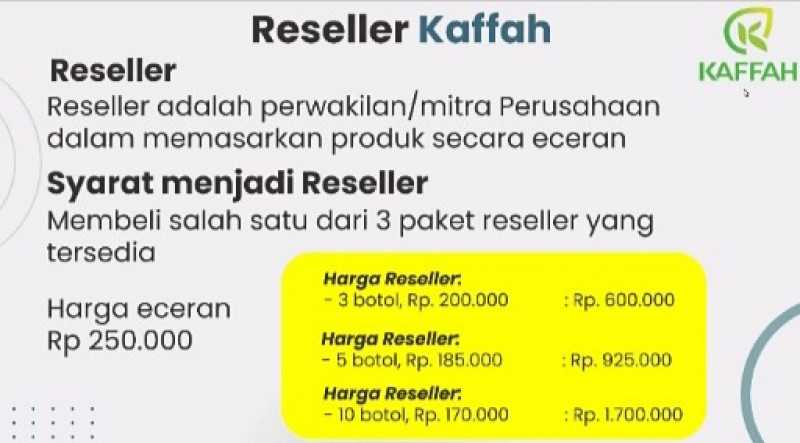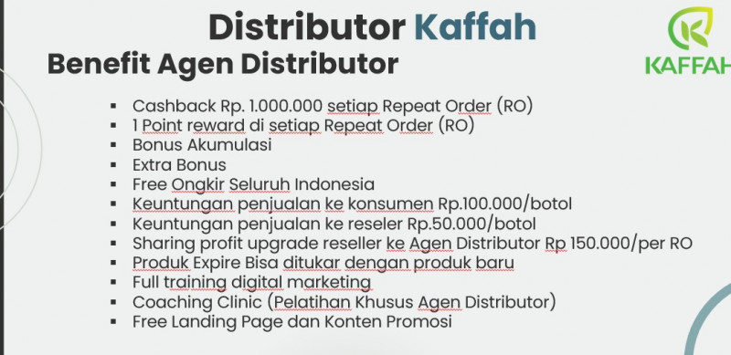 Perusahaan memberikan Reward khusus Distributor Kaffah dan tidak berlaku untuk Reseller