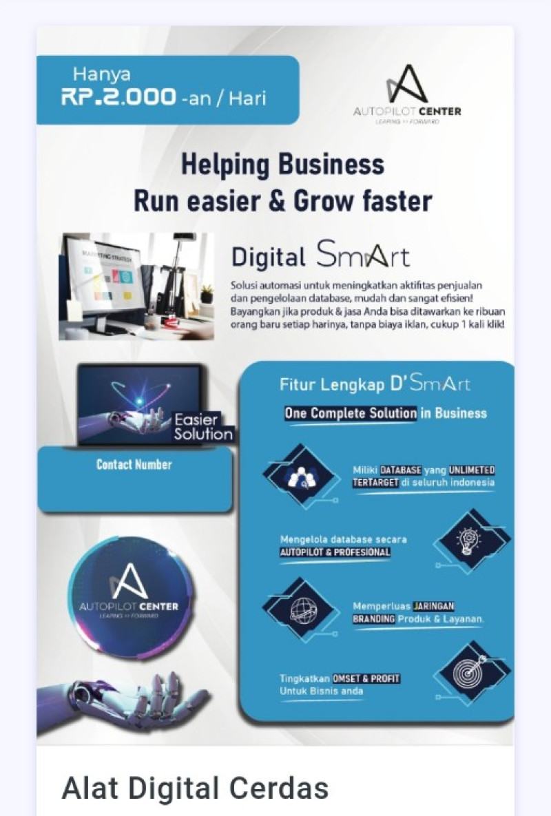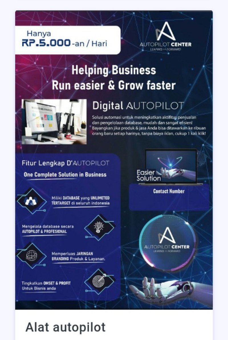 PT Autopilot Center Indonesia Didirikan di DI Yogyakarta, tahun 2020 sebagai perusahaan Start-Up Digital. Perusahaan kami bergerak di berbagai bidang jasa & layanan konsultan bisnis digital. Layanan kami mencakup berbagai jasa konsultasi bisnis, pengembang web dan pengembang aplikasi serta afiliasi pemasaran digital dan agensi media digital.